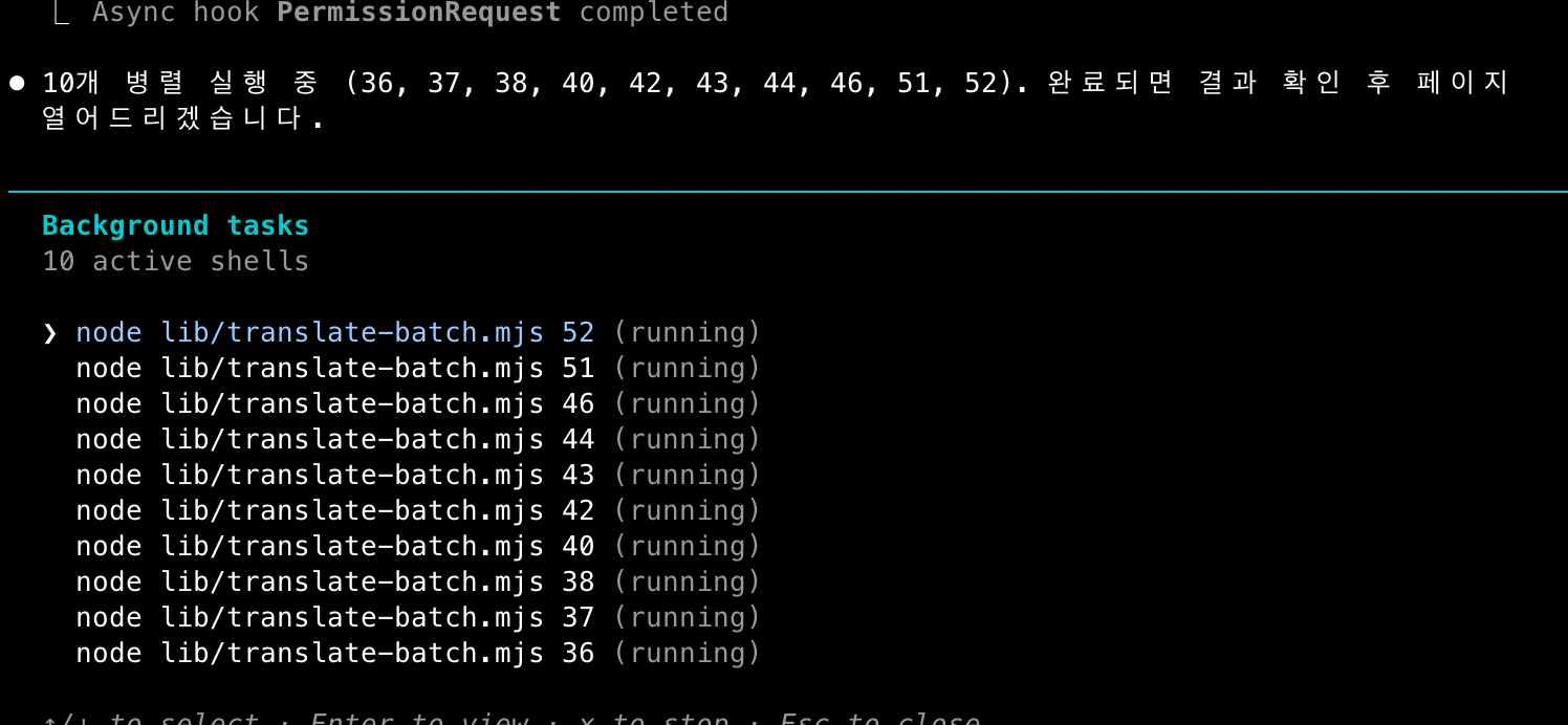 위 영상처럼, claude는 그저 병렬 node script를 수행하는걸 체크하고 현재 progress bar가 어느정도까지 왔나정도만 확인하게 만들었다.