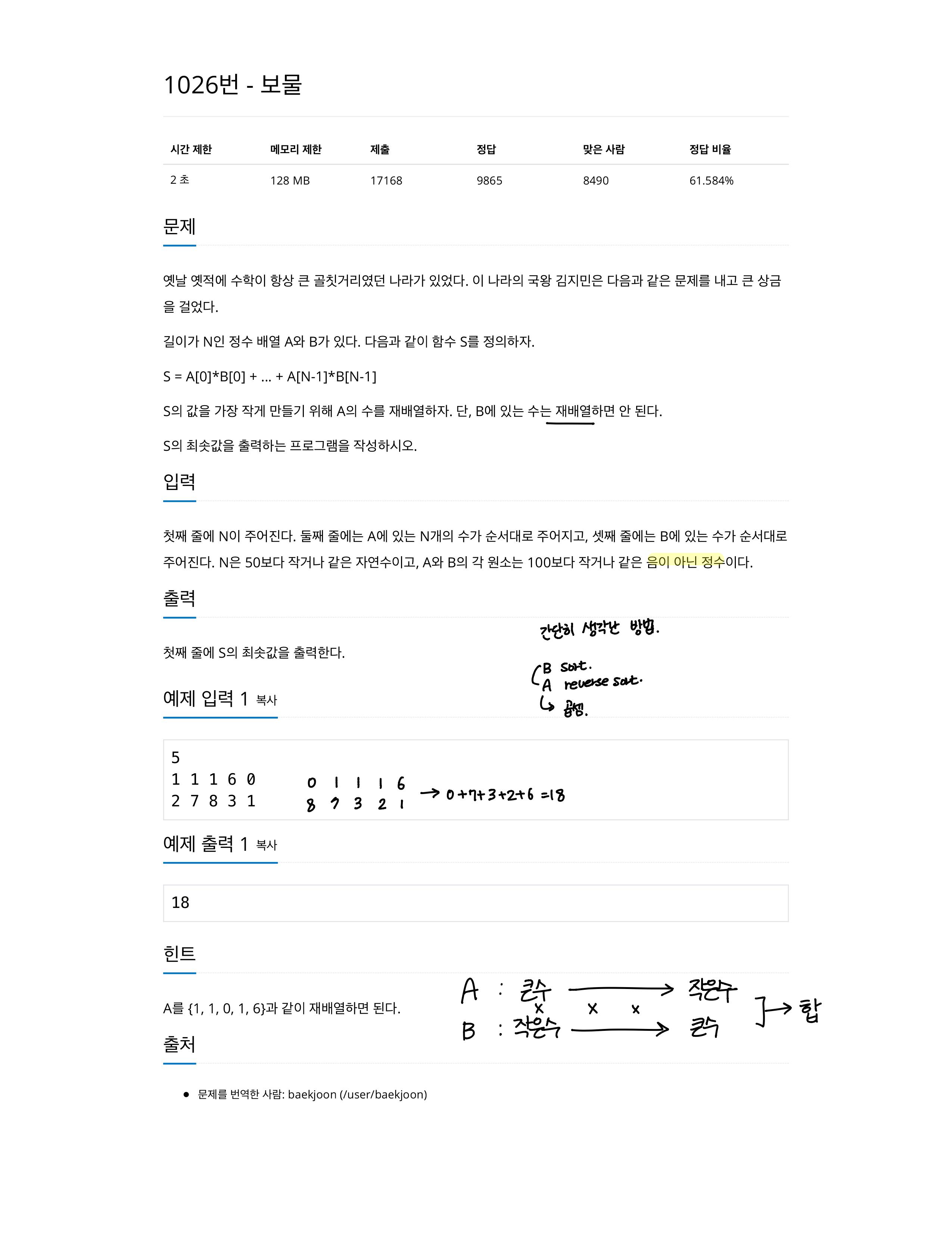 https://www.acmicpc.net/problem/1026