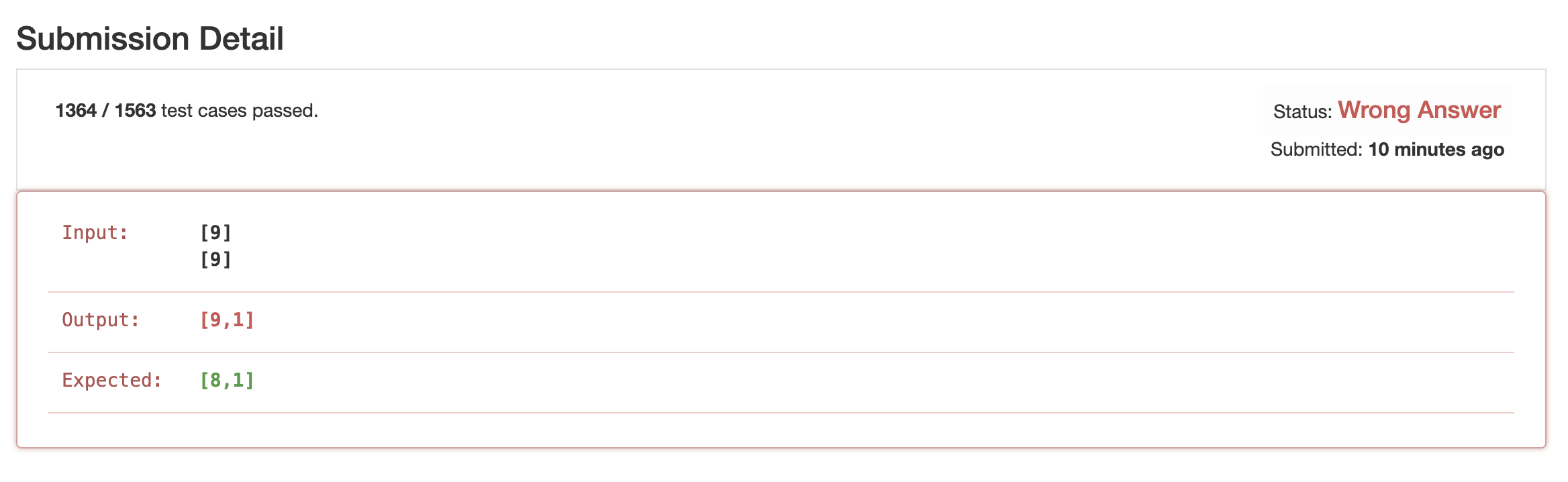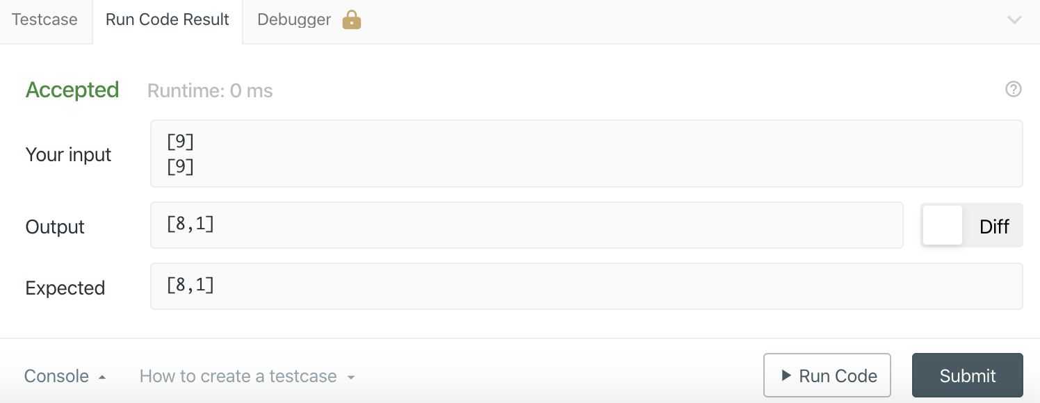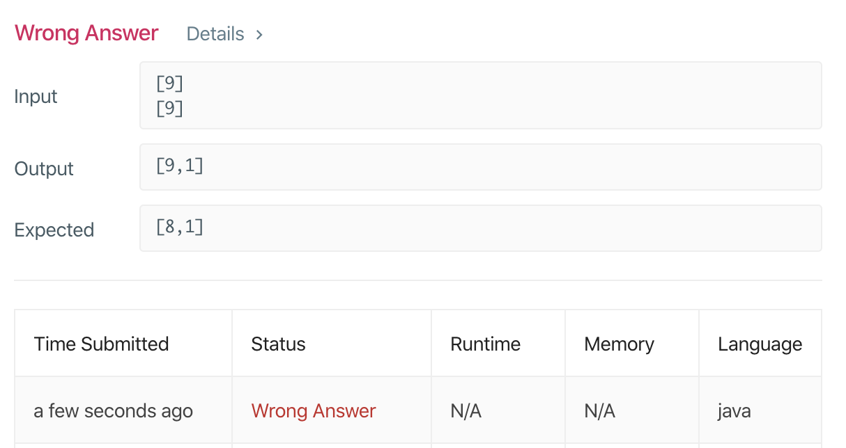 그래서 엥,, 이상하다 하고 leet code 측에 메일을 보냈었는데, 문뜩 생각이 들어서 확인을 해보니, test case를 1000개를 실행해 주었고, 내가 전역변수로 설정한 carry값이 다음 test case 실행에 영향을 미췄더라면? 이라는 가설을 내고 확인해보았더니 맞았다.