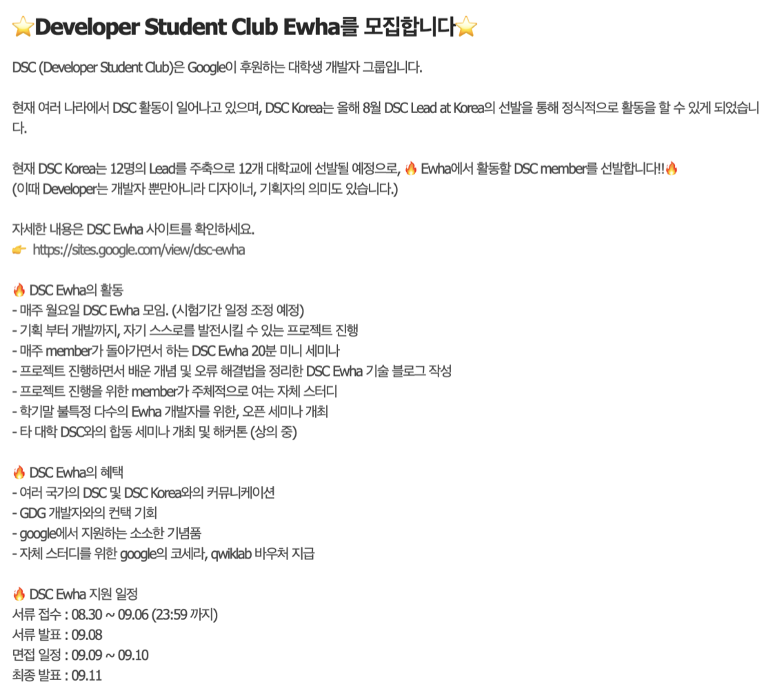 - 여러 개발 동아리가 있는데, 굳이 DSC Ewha를 해야하는 이유?