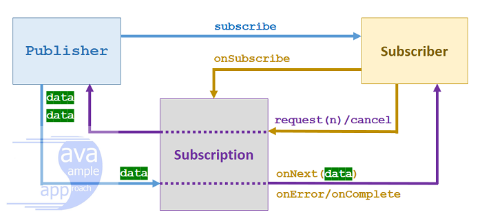 - Publisher는 동작이 성공적으로 끝나면 onComplete, 문제가 발생하면 onError를 호출해 Subscription을 종료한다.