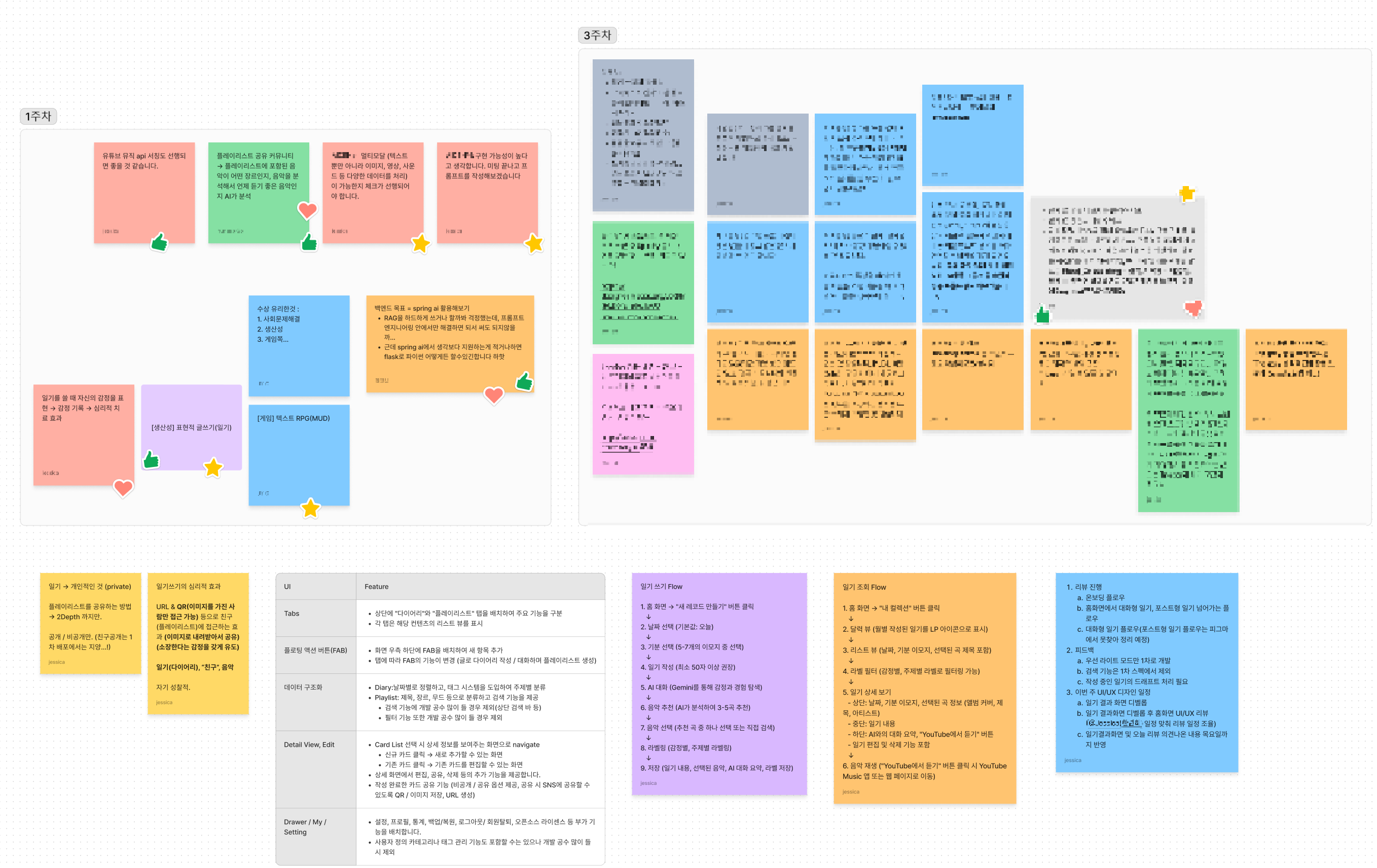 초반에는 기획을 다같이 정리하는 시간을 가졌는데 PM언니가 떠다니기 쉬운 아이디어들을 잘 정리해주고 다시 리마인딩 하면서 회의를 진행했던게 좋았다.