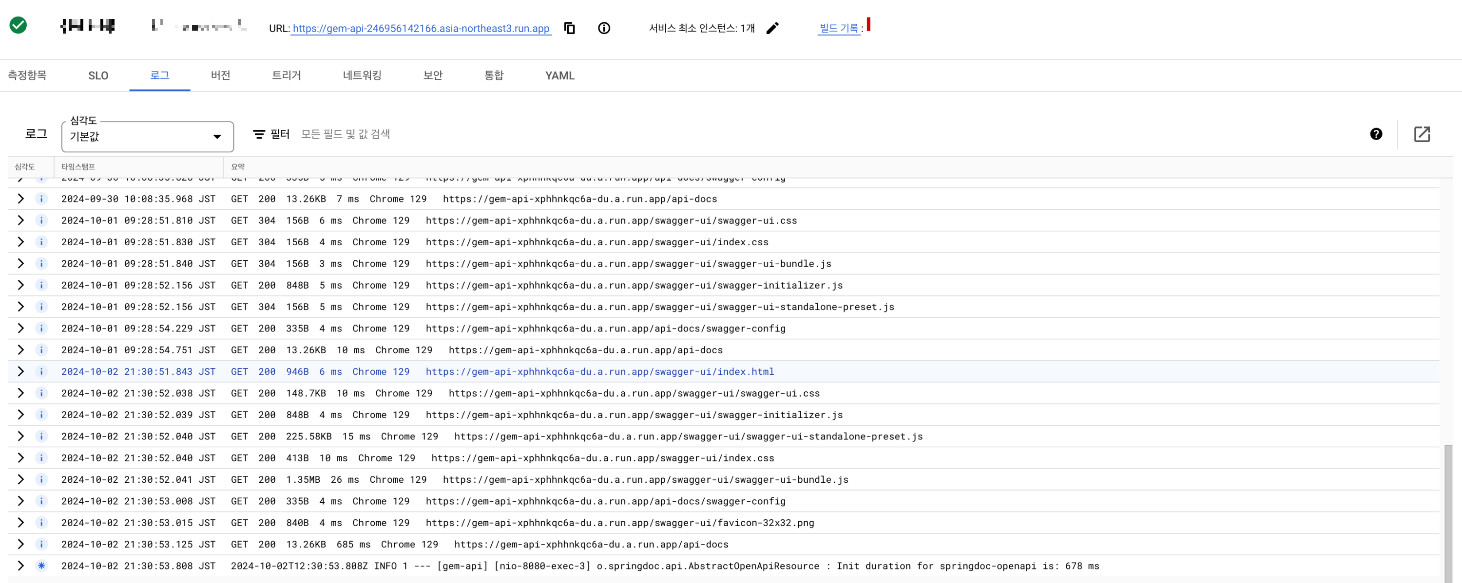 cloud run을 사용하니 로깅도 즉각적으로 확인 할 수 있고 트래픽 모니터링도 기본적으로 제공해주는 게 있어서 편했다.