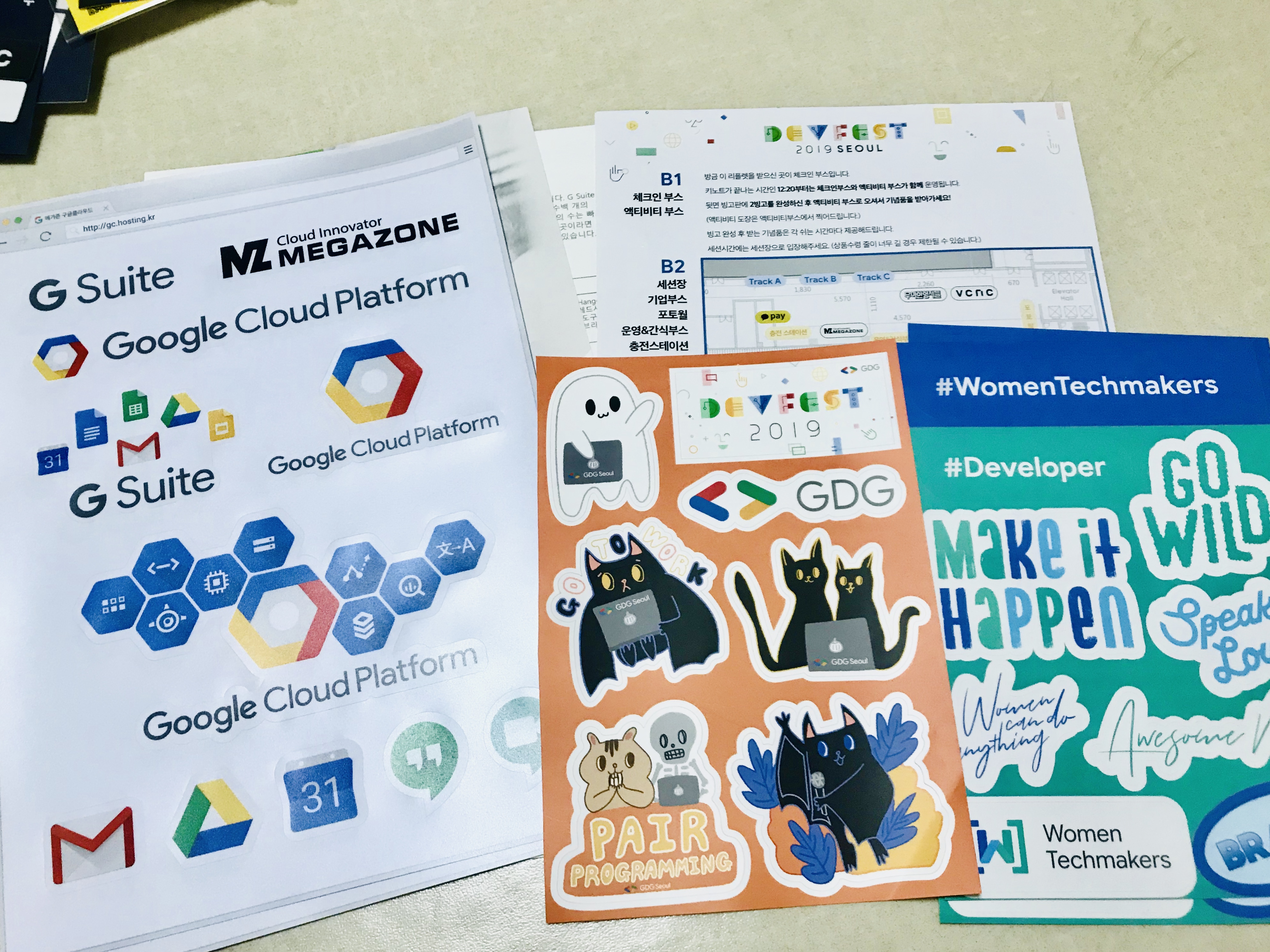 그리고 Women Techmakers 쪽 부스는 아무래도 DSC Ewha 차기 활동을 생각해서 제 소개를 드리고 연락 방법도 물어보고 했습니다!! WTM쪽에 관심이있었는데 이번 기회에 오거나이저 분들을 만나뵐 수 있어서 운이 좋았네요