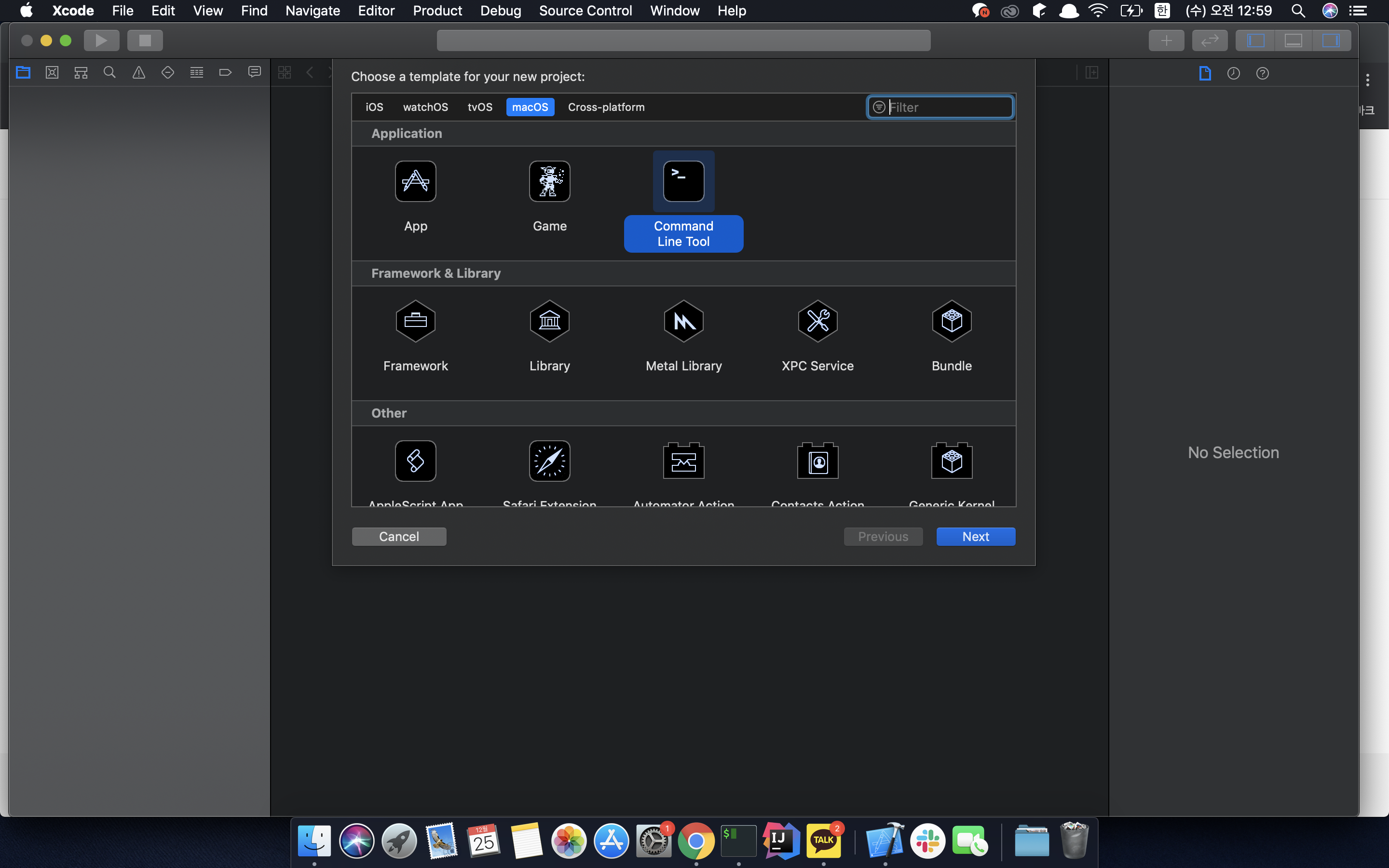 이때 프로젝트의 Command Line Tool 으로 만들어 줍니다.