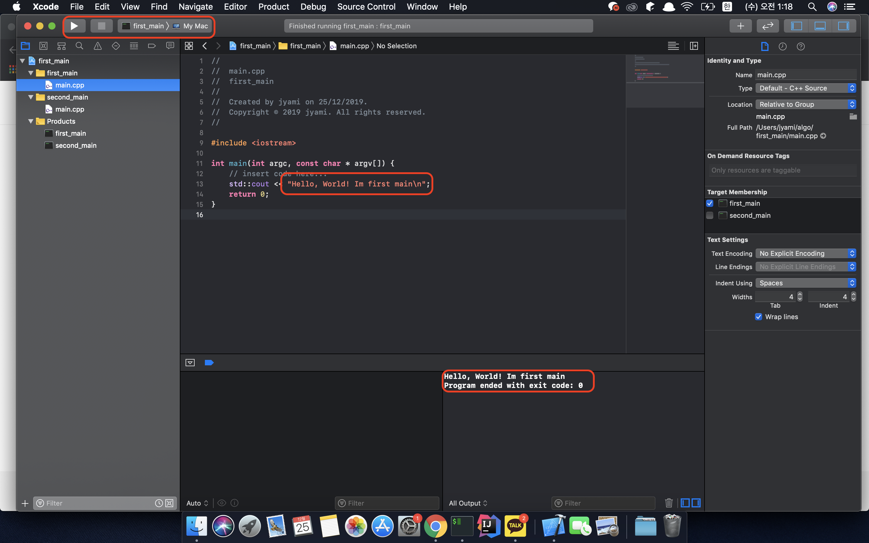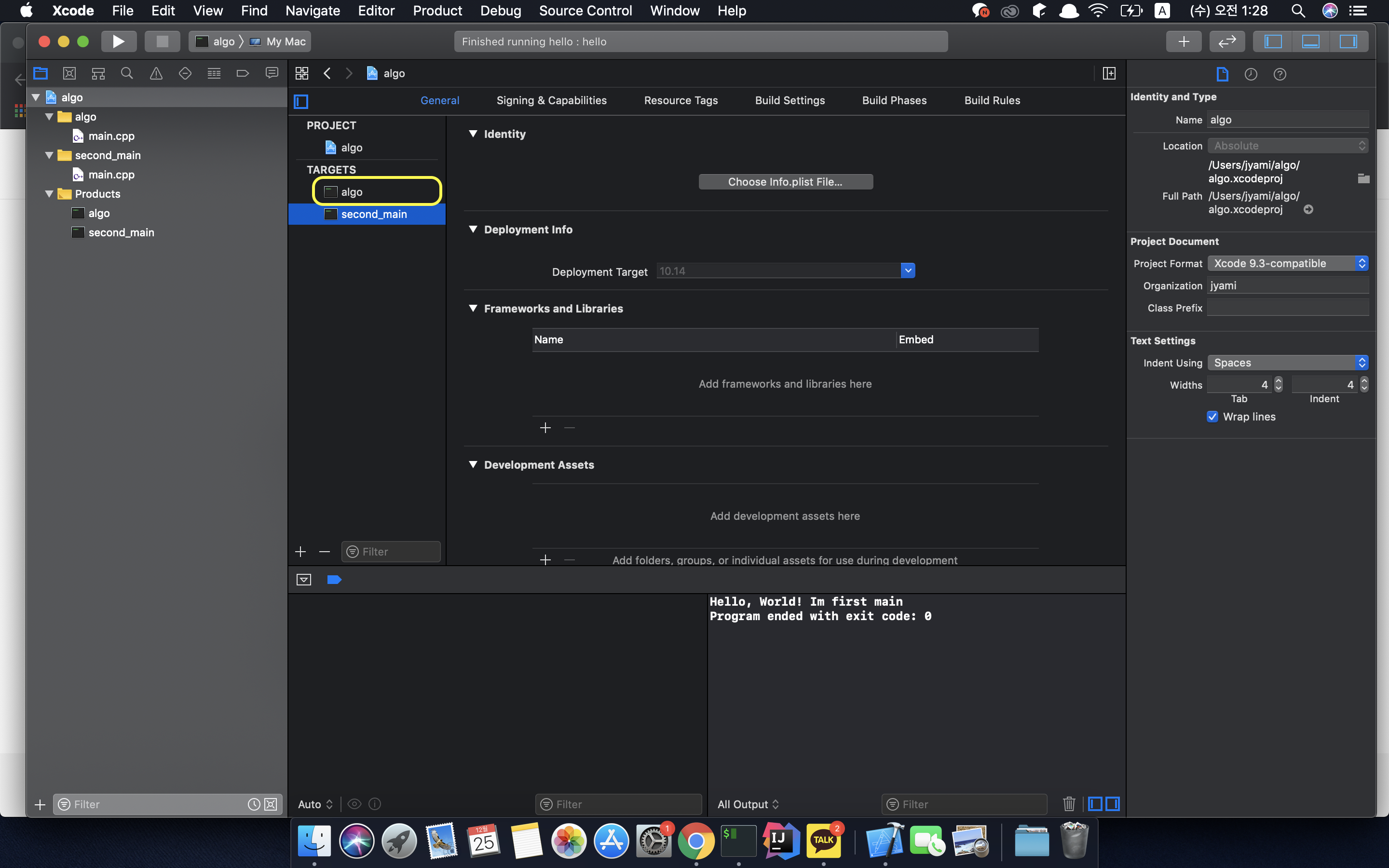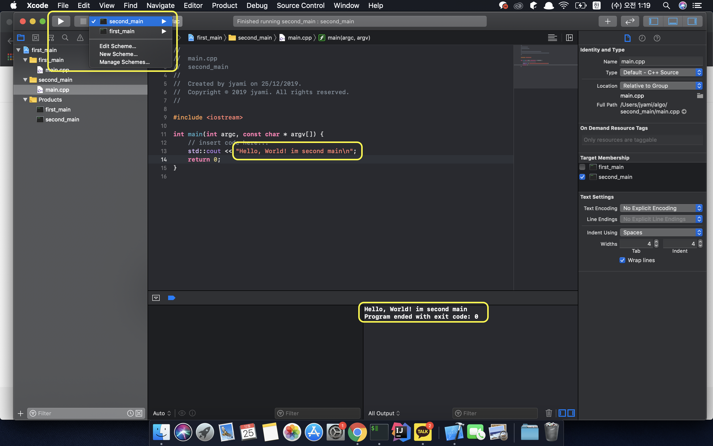 한개의 Xcode 프로젝트에 여러개의 main.cpp를 만드는 방법을 포스팅하려 합니다.