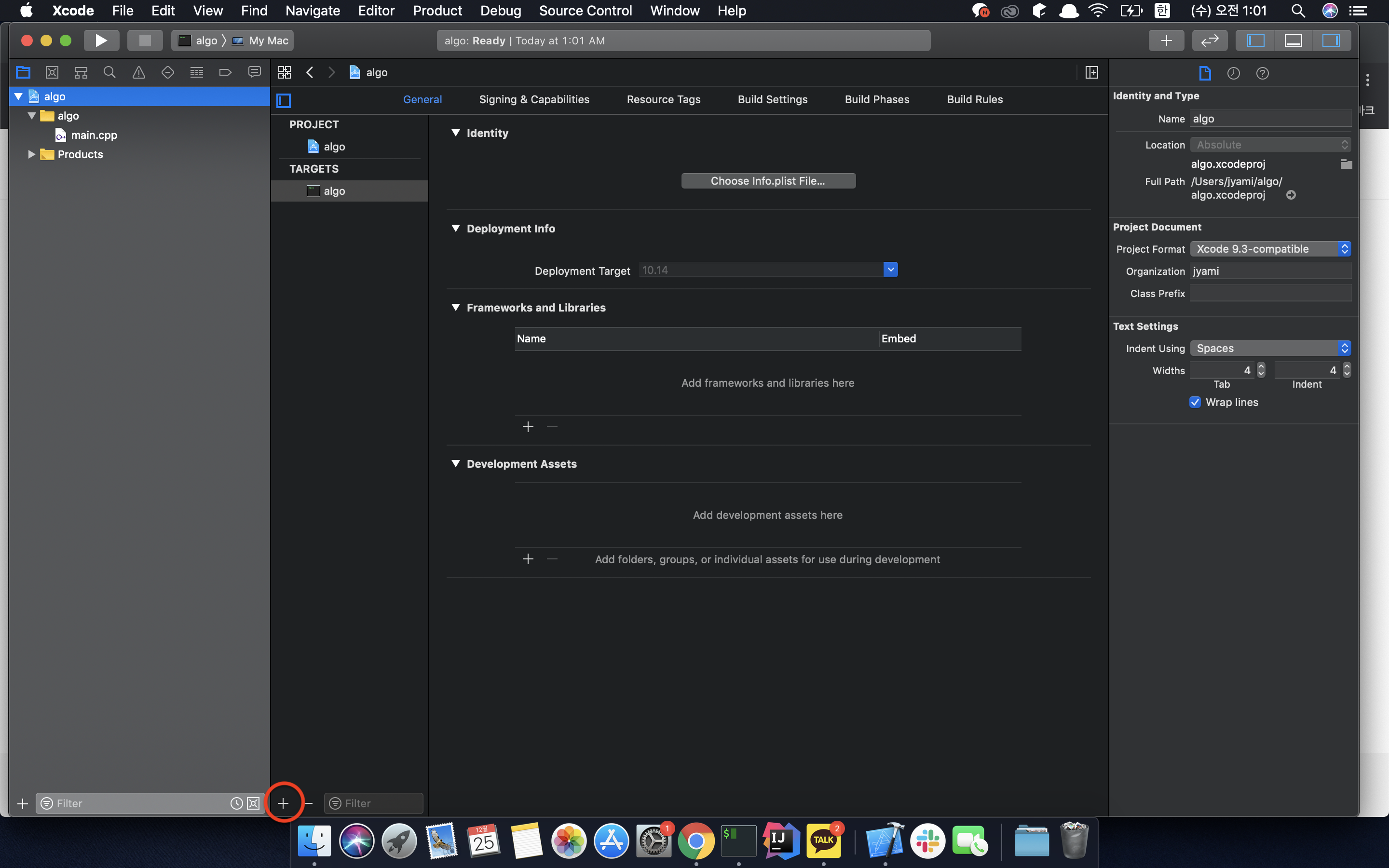 6-1. Xcode 프로젝트의 Target에서 algo 타겟을 더블클릭하여 바꿉니다.