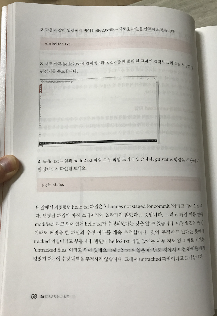 아래 사진이 가장 인상 깊었던 설명이었는데, unstracted file을 보는 방법을 git bash에서 나오는 설명과 대응시키면서 글로 서술하고 있다.