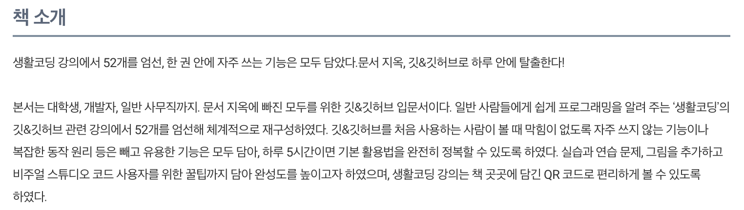 요약하자면 깃을 처음 접해보는 사람이 읽기에 좋은 책이다.
