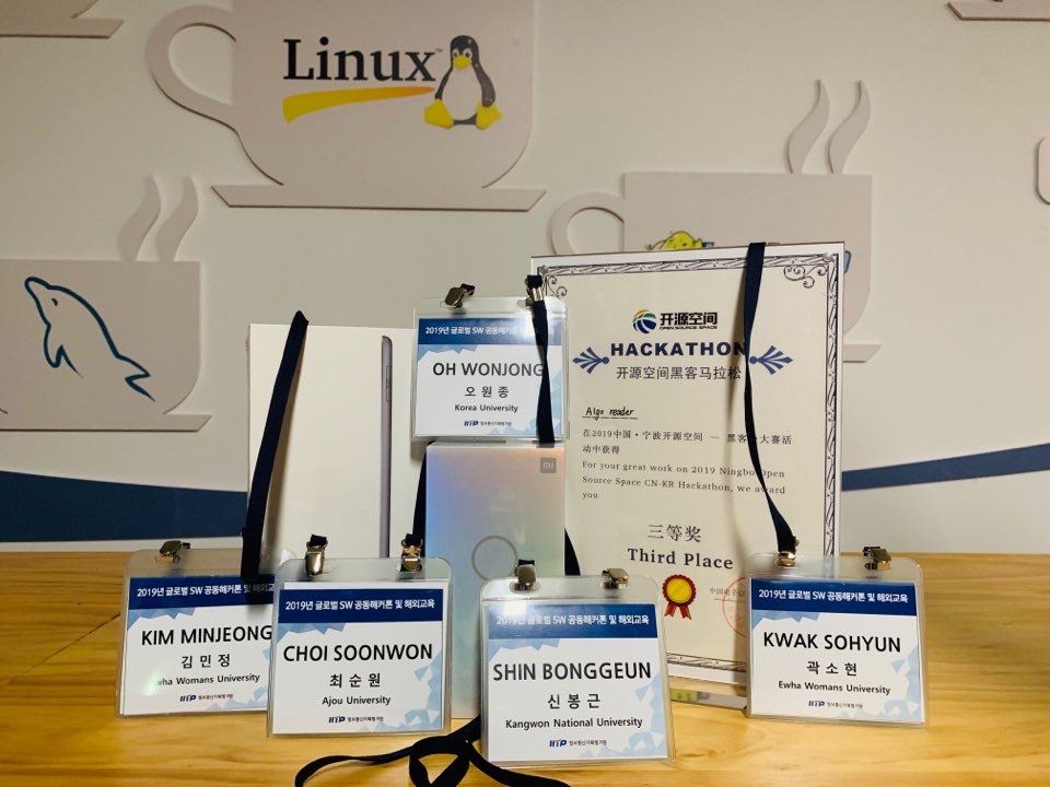 - 2019년 글로벌 SW 공동 해커톤 3등 상 (팀 명: 알고리더)