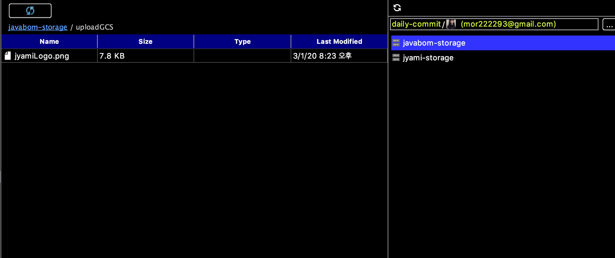 구글 콘솔이나 인텔리제이 플러그인으로 storage를 확인하면 아래와 같이 파일이 잘 업로드됨을 확인할 수 있다.