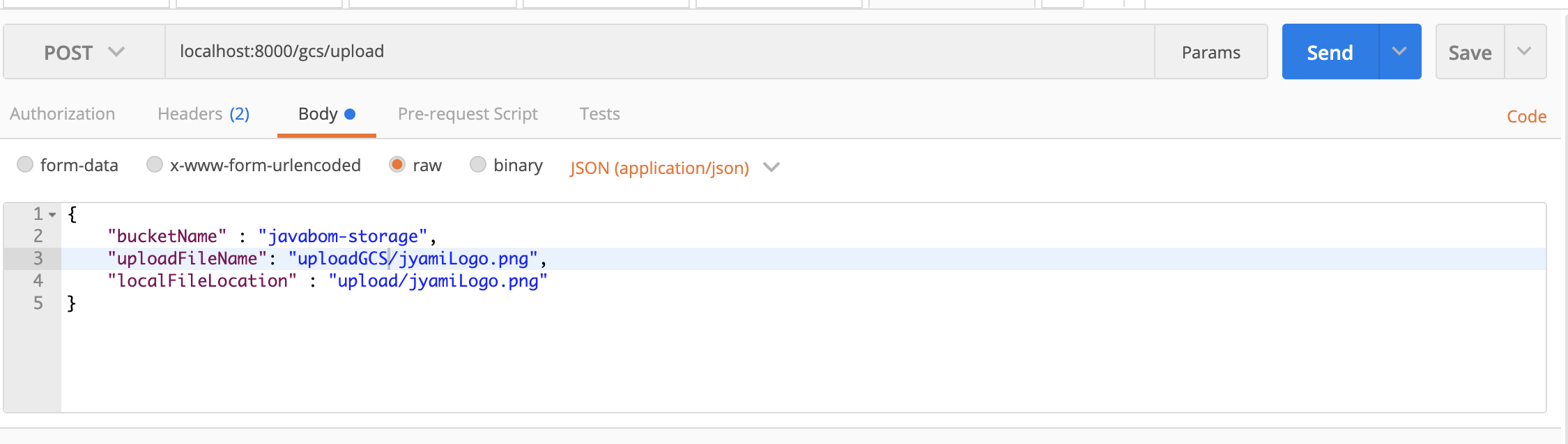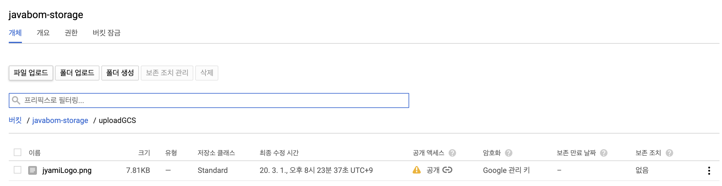 이 API를 이용하여 내 local 프로젝태 내에 있는 upload/jyamiLogo.png 파일을 GCS에 업로드하겠다.