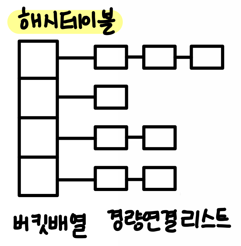 해시테이블 내부 : 버킷들의 배열 + 각 버킷을 키-값 쌍을 담는 연결리스트의 첫 번째 엔트리 참조